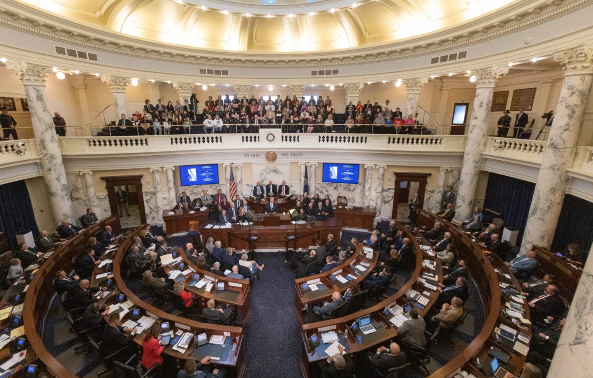 The building features a prominent terra cotta dome rising 208 feet above the skyline, topped with a bronze eagle symbolizing Idaho’s ideals. Its exterior is made from locally quarried sandstone and granite, with historical details reflecting both ancient Greek and Roman architecture, including a grand portico supported by Corinthian columns. Inside, there is a spacious central rotunda with massive columns clad in elegant scagliola veneer and large, light-filled rooms for the House and Senate chambers.