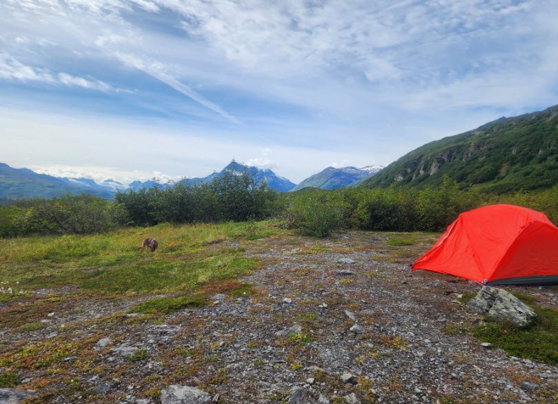 Accessible only by boat or floatplane with no roads or facilities, it offers secure anchorage, primitive beach camping on tent platforms, a rustic 12x14 cabin sleeping six, kayaking, fishing, hiking shore trails, and wildlife viewing of bears, seals, sea otters, eagles, and salmon runs amid glacially carved scenery, best visited June to August under self-sufficient Leave No Trace practices.
