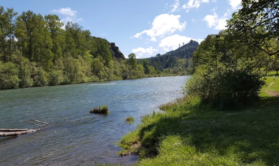 Visitors enjoy river access for angling, canoe and kayak launches on the Willamette River Water Trail, an off-leash dog area downstream, and peaceful walks amid the constant river sound, open year-round with no camping.