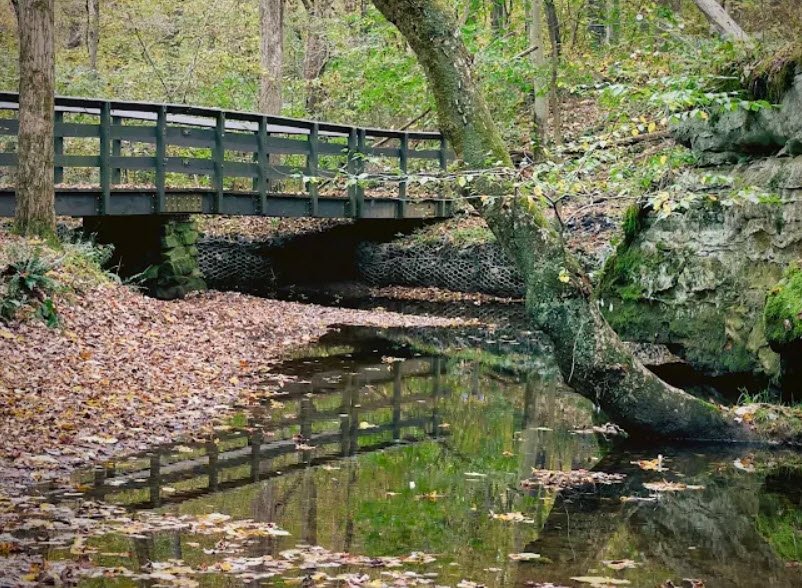 It features Pennsylvania's only publicly protected 20-acre relict prairie ecosystem—home to rare blazing star wildflowers, endangered massasauga rattlesnakes, and diverse prairie plants—alongside forests and Big Run creek bordering Moraine State Park.