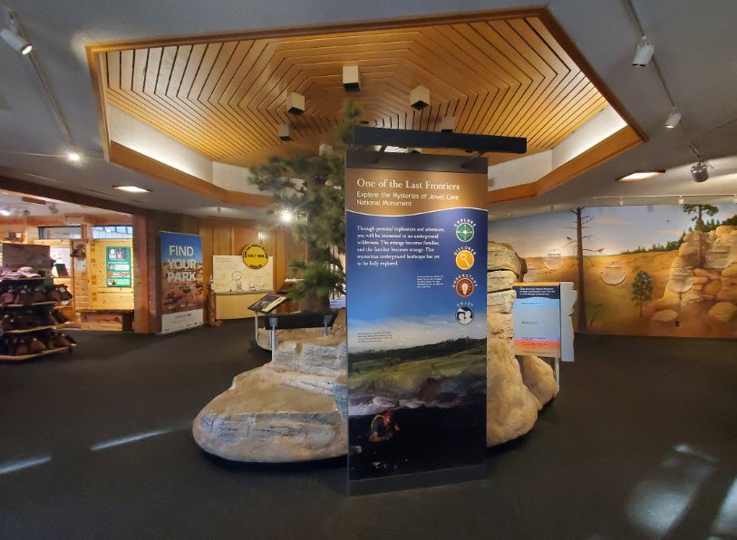 The Jewel Cave National Monument Visitor Center in South Dakota serves as the gateway to Jewel Cave, the fifth longest cave system in the world.