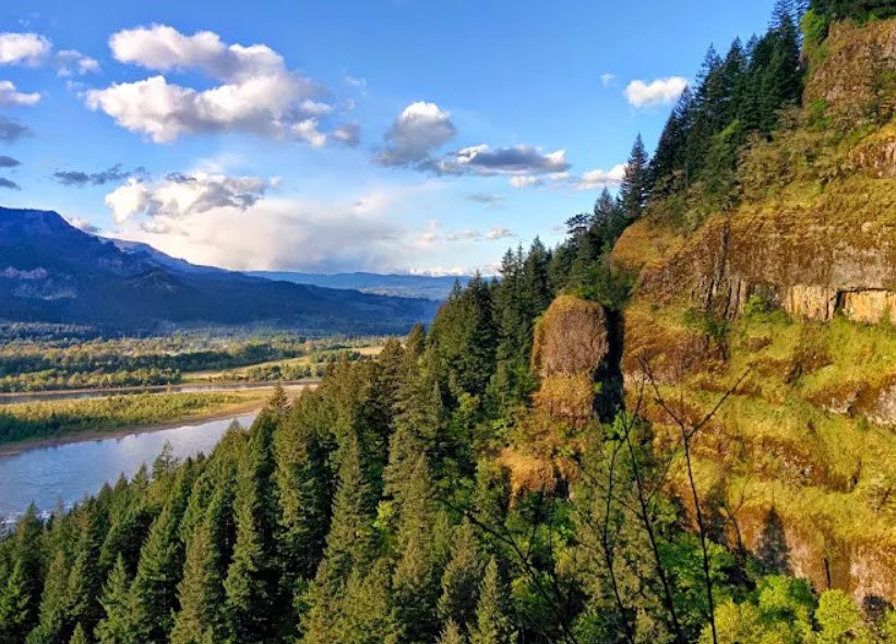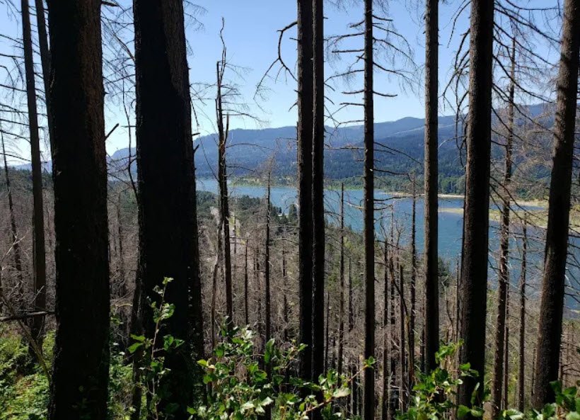 Part of the Bonneville Segment of the Historic Columbia River Highway State Trail, it also connects to a 5.5-mile paved path for walking or biking to the Bridge of the Gods, offering Gorge views, wildflowers, and access to nearby Eagle Creek and Pacific Crest Trail intersections amid post-Eagle Creek Fire regeneration.