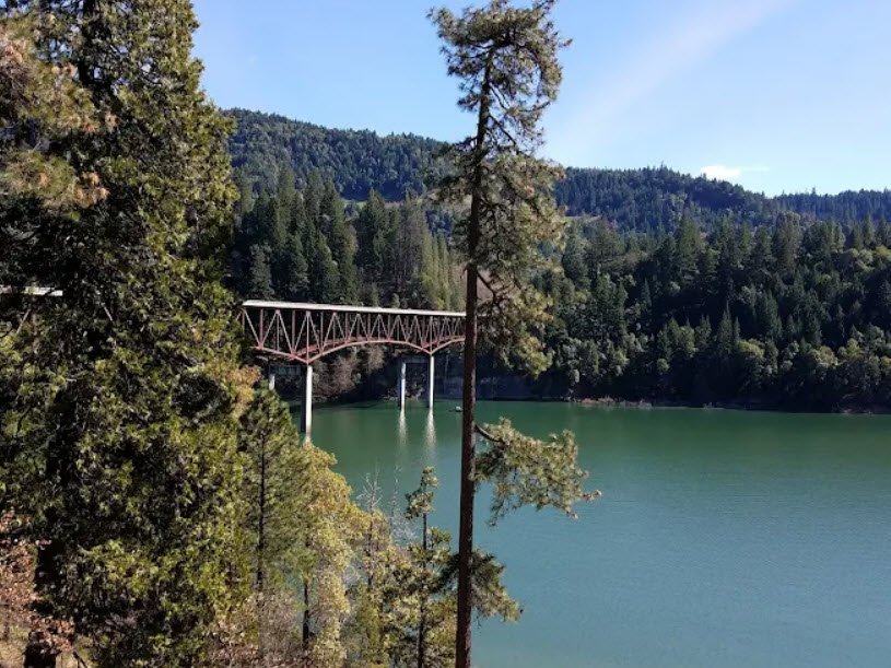Visitors enjoy an 11-mile trail system for hiking and biking through forests with streams, swimming in cool mountain waters, boating or fishing for trout and bass at the marina, and easy access to Rogue River adventures like the Avenue of the Boulders.
