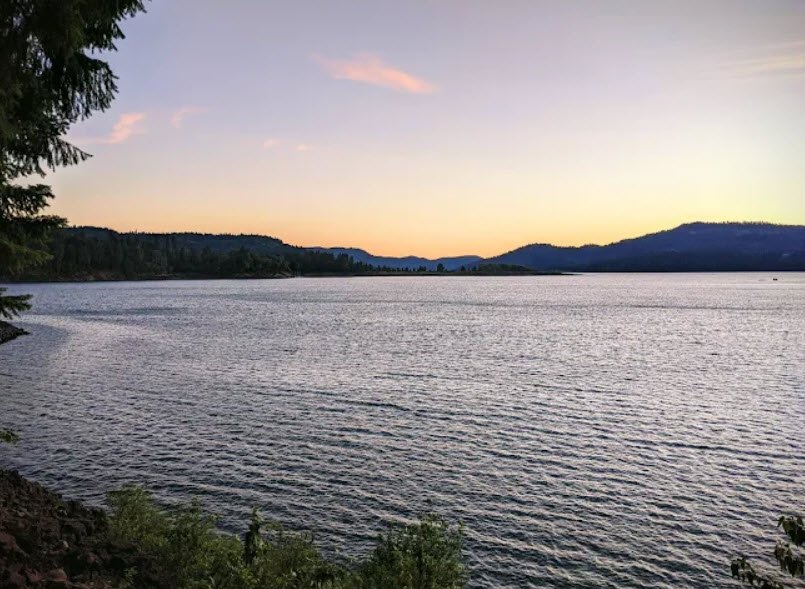 It offers stunning campsites overlooking the water amid large conifer trees, mountains, and wildlife, with around 200 sites including electrical hookups, tent areas, group camping, hot showers, an RV dump station, playground, volleyball court, horseshoe pits, and a fenced pet area.