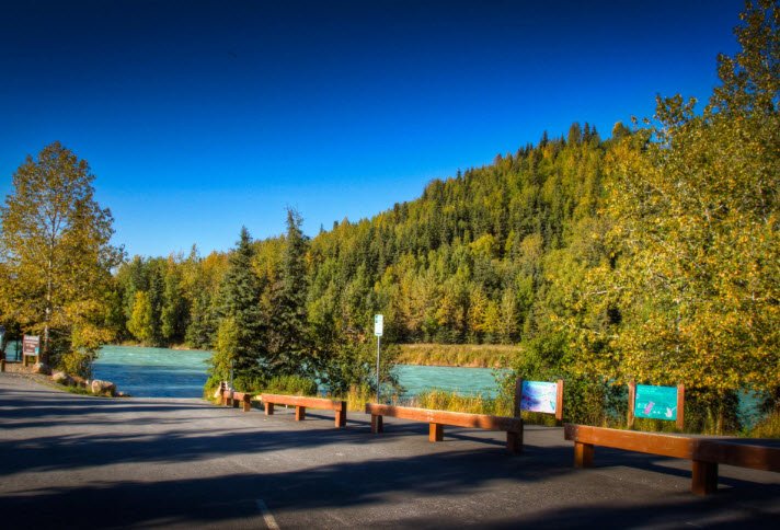 Kasilof River State Recreation Site is a day-use wooded park along Alaska's Kasilof River on the Kenai Peninsula, offering 25 picnic sites with tables, a popular boat launch for drift boaters targeting king salmon, hiking trails, toilets, and water.