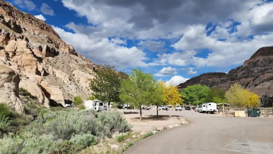 Visitors enjoy shaded picnic areas, a small campground that stays open 24 hours, light hiking and mountain biking on about 14 miles of trails, wildlife viewing for deer and wild horses, and family‑friendly features like a playground, horseshoes, and a greenhouse, all within a compact, easy‑to‑walk canyon that contrasts sharply with the surrounding arid landscape.
