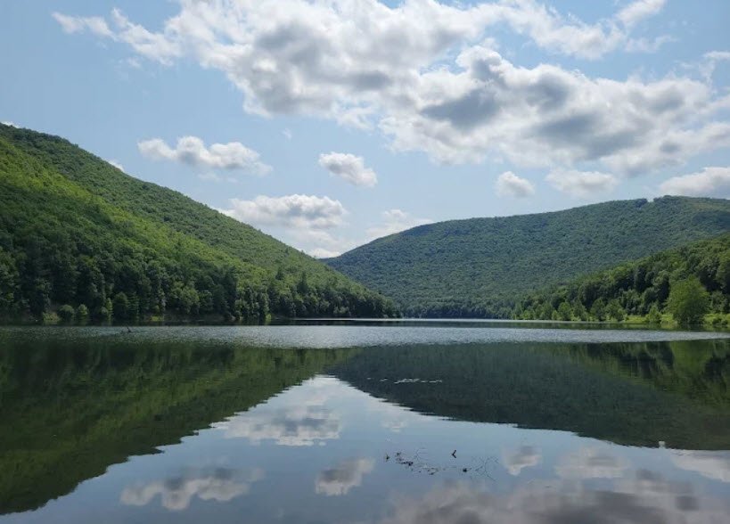 Kettle Creek State Park spans 1,793 acres in Leidy Township, Clinton County, Pennsylvania, nestled in a valley surrounded by mountains and wilderness near Renovo.