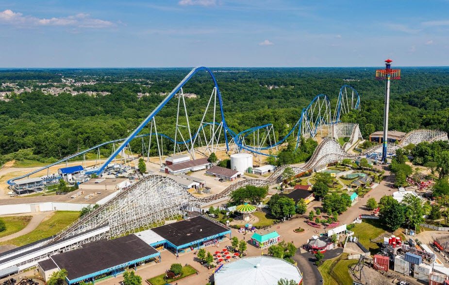 With over 100 attractions including 15 roller coasters like The Beast—the world's longest wooden coaster—and a 33-acre water park, it draws millions annually for thrills, family rides, and seasonal events amid ongoing expansions.