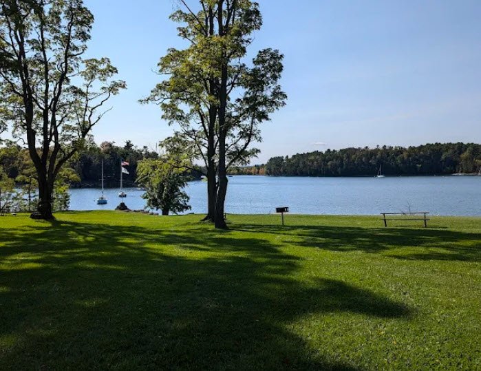 Open from Memorial Day to Columbus Day, it offers canoe/kayak rentals for paddling the protected bay, swimming, fishing, hiking trails, picnicking with grills, birdwatching, biking, and winter sports amid lush greenery and wildlife. Historic highlights include the 1790 Hawley House banquet hall for events and weddings, plus early settler farm buildings, creating a serene escape near Route 7 with stunning lake vistas.
