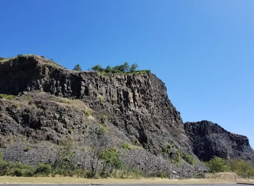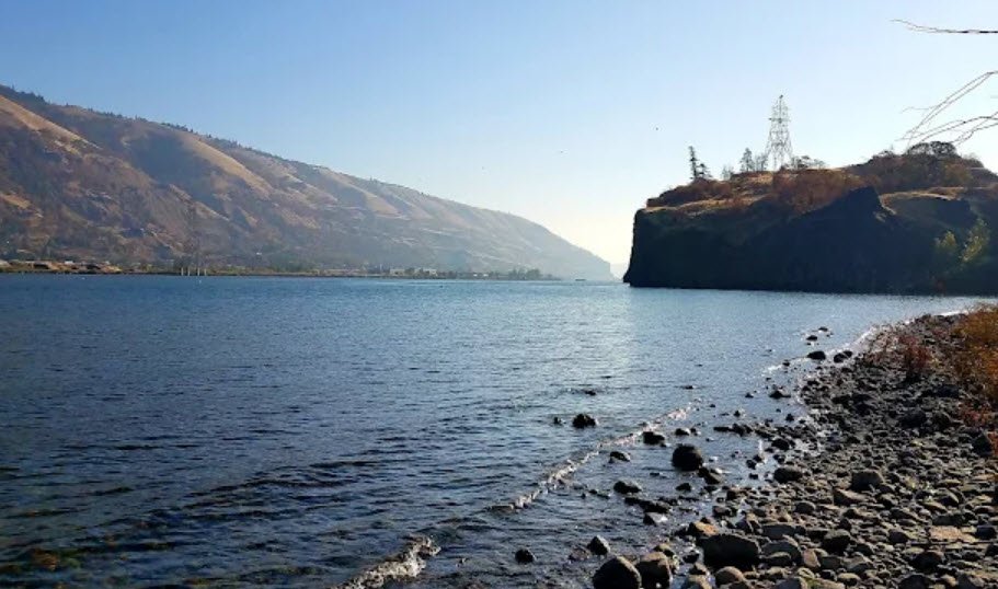 This free, year-round wayside features picnic tables, grills, restrooms, ample parking, and a boat ramp, popular for swimming, windsurfing, kiteboarding, fishing, birdwatching amid Gorge rock formations, and scenic Gorge views screened by a large rock from highway noise.