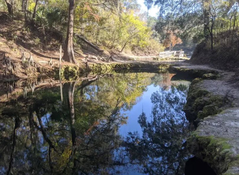 This geological wonder amid hardwood forests and steep bluffs supports swimming, snorkeling, scuba diving, canoeing to the river, fishing, hiking short trails, picnicking under moss-draped oaks, primitive camping, and cabins elevated above the floodplain. Open daily from 8 a.m. to sundown with a $5 vehicle fee, the park draws adventurers to its karst features and wildlife viewing along the Suwannee River Wilderness Trail, though spring access varies with river levels.
