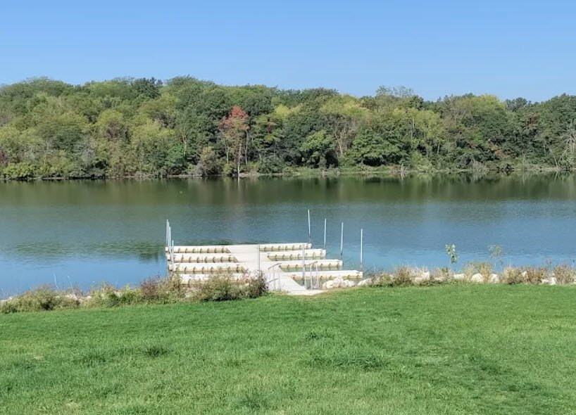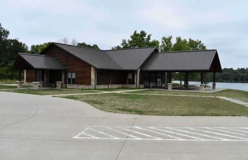 Built on Honey Creek with a massive earthen dam, it underwent a $12 million restoration addressing siltation and water quality, now offering boating, kayak rentals, fishing jetties for bass and panfish, a sandy beach, modern camping, year-round cabins, a renovated lodge for events, picnic shelters, playgrounds, and miles of woodland trails for hiking, biking, snowmobiling, and cross-country skiing.