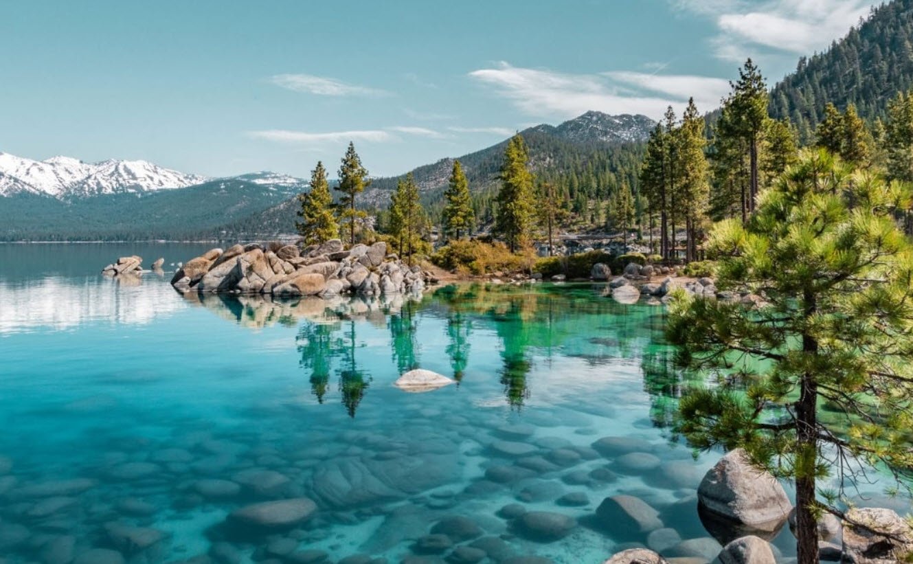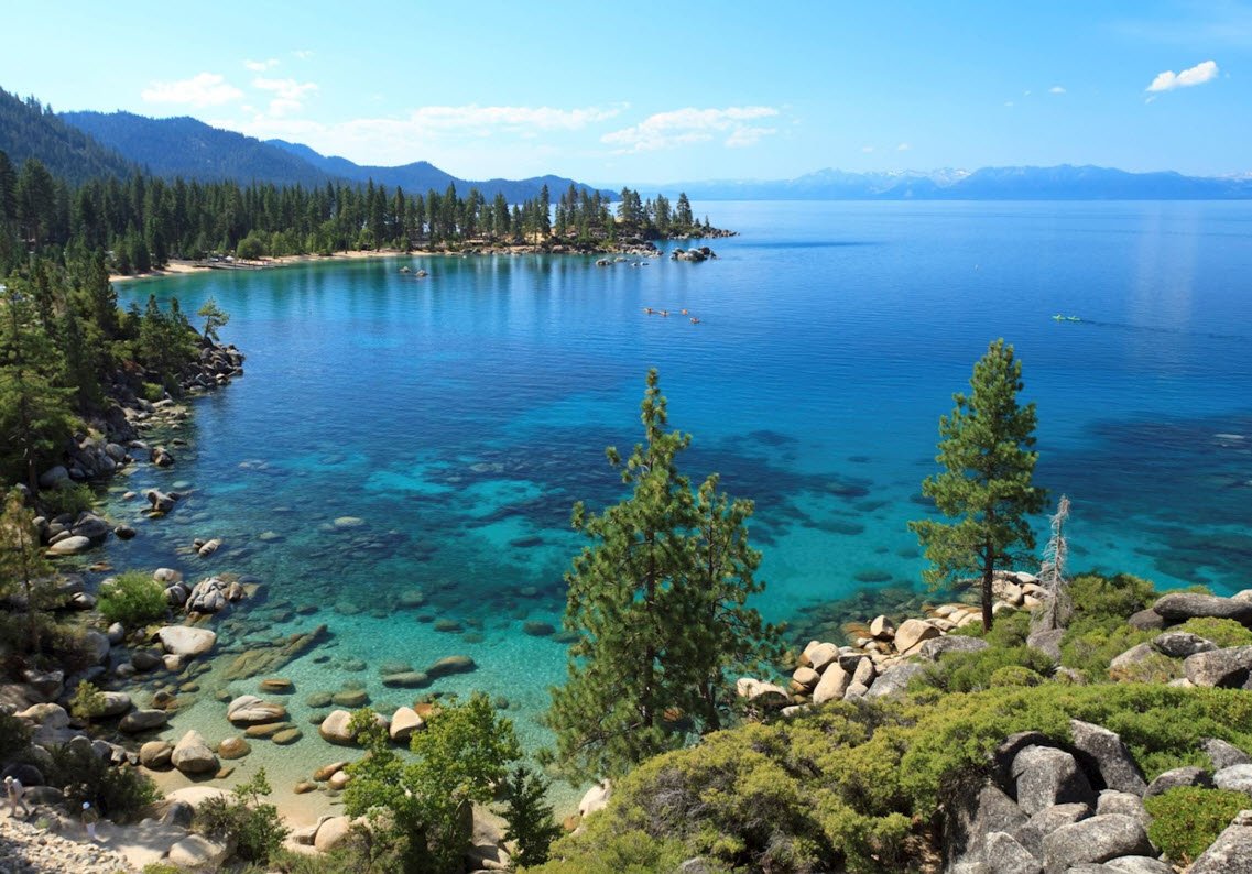 It is the largest alpine lake in North America, sitting at an elevation of about 6,225 feet (1,897 meters) above sea level, and is known for its remarkable clarity and deep blue waters. The lake covers an area of roughly 193 square miles (500 square kilometers) with about 72 miles of shoreline, making it a major destination for outdoor recreation including skiing, hiking, boating, and fishing. Lake Tahoe’s depth reaches 1,645 feet (501 meters), making it the second deepest lake in the United States.