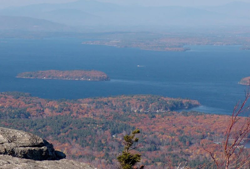 It contains at least 264 islands, many of which are small, with notable larger ones like Long Island and Bear Island. The lake is set in the foothills of the White Mountains and is known for its clear, spring-fed waters, making it a popular destination for boating, fishing, and tourism. The shoreline is heavily indented by peninsulas, giving it an extensive shoreline of around 178 miles.
