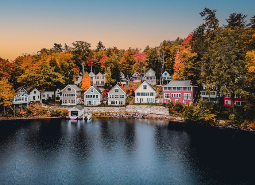 It sits at an elevation of 504 feet above sea level and has a maximum depth near 180 to 213 feet. Lake Winnipesaukee feeds into the Winnipesaukee River and ultimately contributes to the Merrimack River watershed. The area around the lake includes historic summer resorts and attracts visitors for recreational activities year-round.