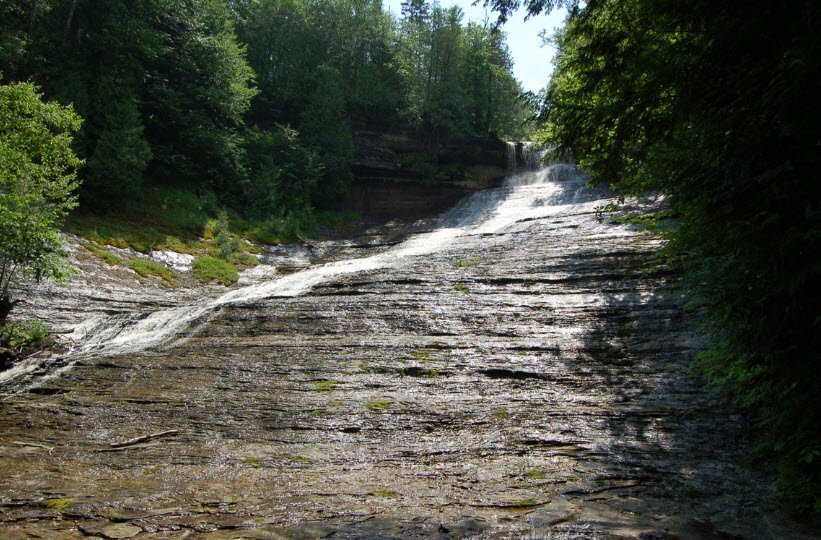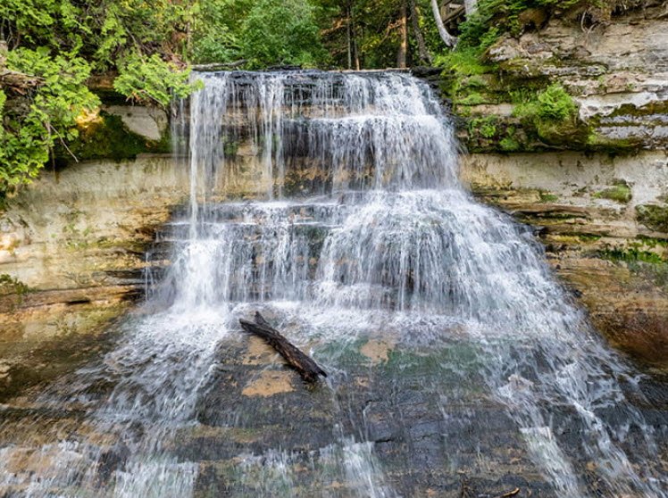 This undeveloped scenic site also features 2.5 miles of trails linking to the North Country Trail, old-growth white pine and hemlock groves, and winter ice formations, ideal for hiking, photography, and quiet nature immersion eight miles south of Lake Superior.