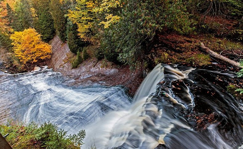 Established in 1946 and managed by the Michigan Department of Natural Resources within the Escanaba River State Forest, visitors access the falls via a half-mile hike through beech-maple woods to three observation platforms, including a steep 137-stair wooden staircase to the lower deck.