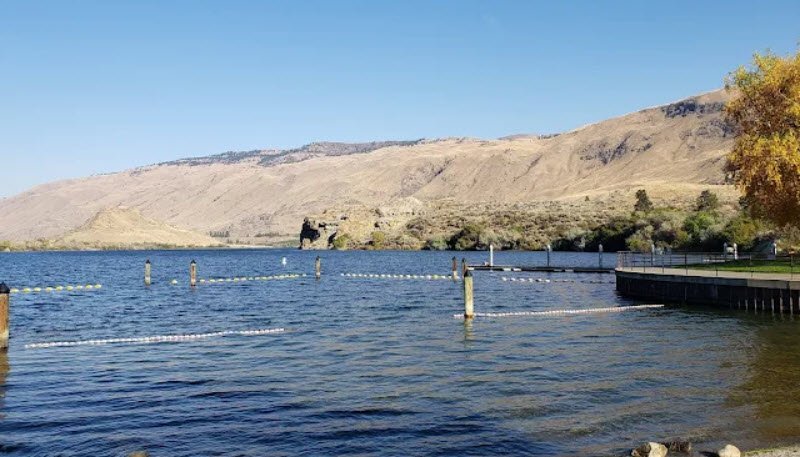 Named for a cliff resembling Abraham Lincoln, it offers boating from a 3-lane launch, fishing, swimming, 94 campsites including full-hookup RVs and cabins, picnicking, playgrounds, sports courts, and trails with views of Swakane Canyon. Managed by Washington State Parks under a utility district lease, this year-round destination blends water recreation with grassy fields amid eastern Washington's sunny climate.