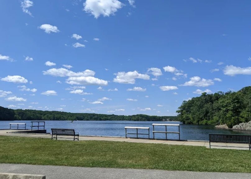 It offers a freshwater beach named Frank Moody State Beach for swimming, trout fishing, boating with canoe/kayak rentals, extensive picnicking at 176 tables and shelters, game fields, and a 2.5-mile paved exercise loop popular for walking, jogging, and biking.
