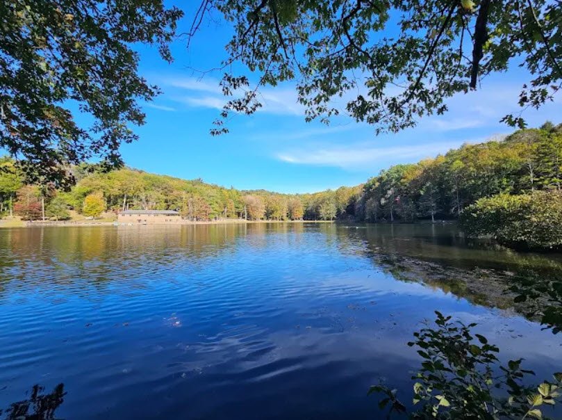 Established in 1970, it offers nearly 20 miles of multi-use trails like the challenging 2.5-mile Rhododendron Run and easier Laurel Run paths through woods and meadows, plus seasonal paddleboard, kayak, canoe rentals, a 46-site campground with electric/water hookups, five picnic shelters, and family-friendly biking and hiking amid scenic Appalachian terrain.