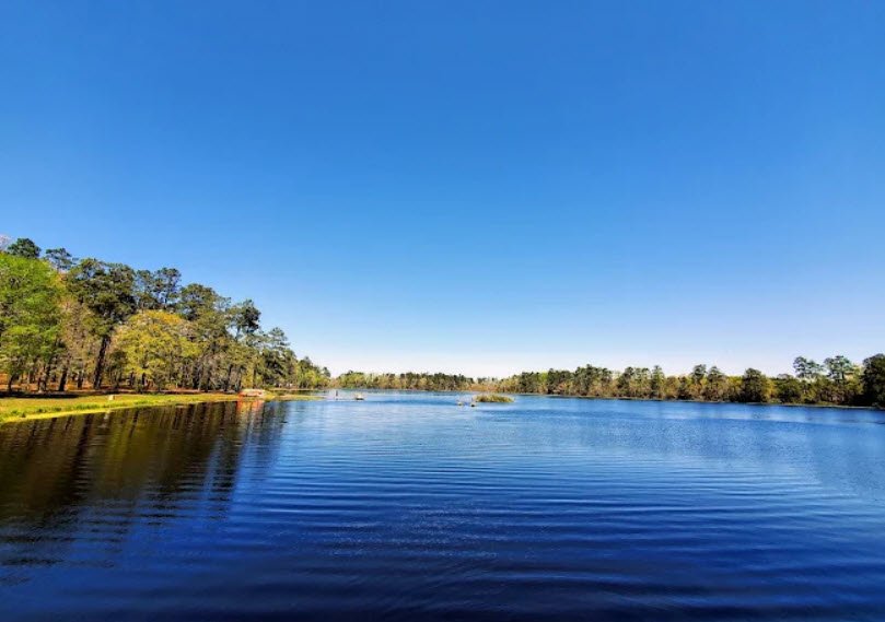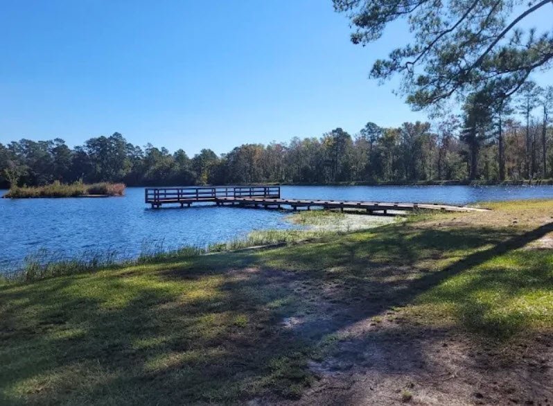 A serene day-use and camping spot, it provides swimming, boating, geocaching, biking, and nature exploration amid the coastal plain's mysterious ecosystems.