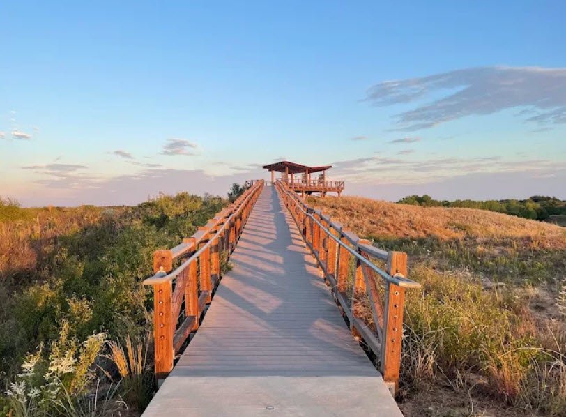 Little Sahara State Park spans 1,600 acres of vast sand dunes in Woods County near Waynoka, northwest Oklahoma, USA, resembling a mini-desert formed from ancient Cimarron River terrace deposits.