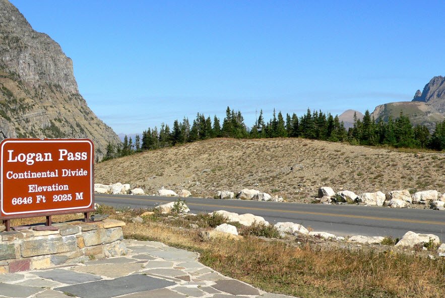 Logan Pass is the highest point along the Going-to-the-Sun Road in Glacier National Park, Montana, sitting at an elevation of 6,646 feet along the Continental Divide.
