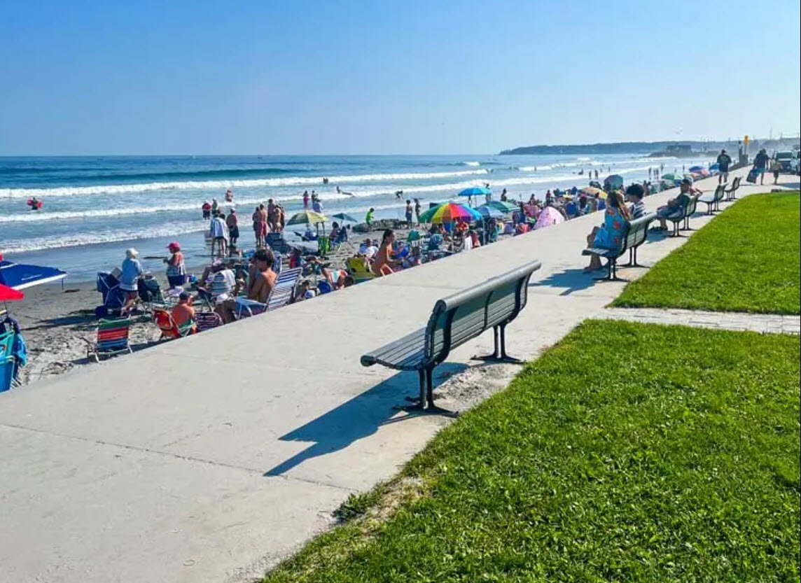 Long Sands Beach in York, Maine, is a popular sandy beach stretching about 1.5 miles between the villages of York Harbor and York Beach.
