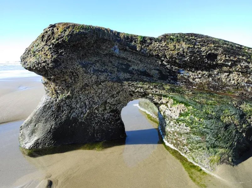 Known for its quiet, uncrowded sands despite proximity to attractions like Yaquina Head Lighthouse, it features picnic tables, restrooms, and prime spots for beachcombing agates, jasper, petrified wood, shells, and sea glass—especially after high tides or winter storms—plus whale watching and stunning sunsets.