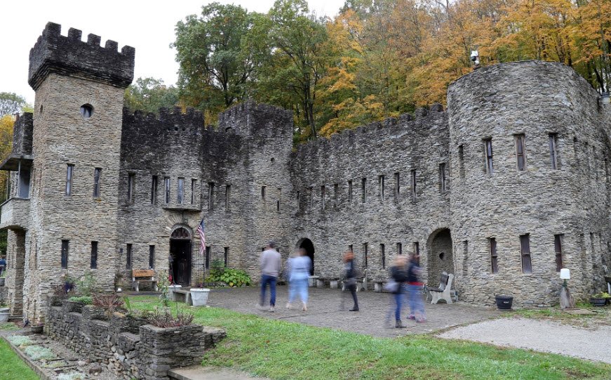Loveland Castle Museum, also known as Château Laroche, sits on the banks of the Little Miami River north of Loveland, Ohio, as a hand-built medieval-style castle constructed starting in 1927 by World War I veteran and Boy Scout leader Harry D. Andrews with help from his Knights of the Golden Trail troop.