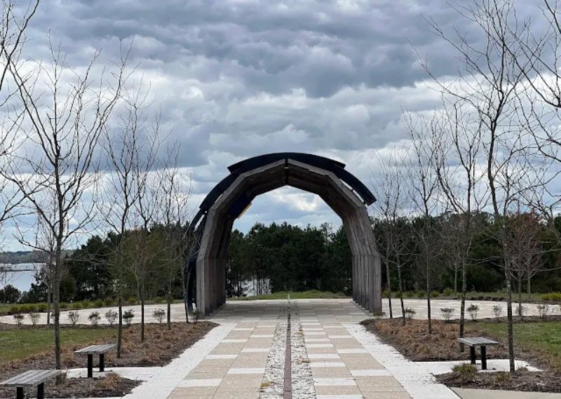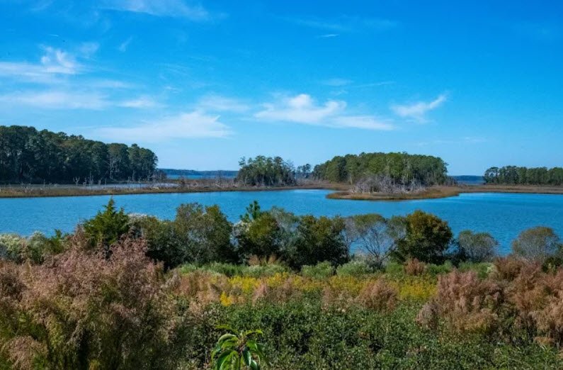 Machicomoco State Park is Virginia's 40th state park and the first dedicated to honoring the state's Native American tribes, spanning 645 acres in southern Gloucester County along the York River near Hayes, about 10 miles downriver from the historic Werowocomoco site central to the Powhatan Chiefdom. Named from an Algonquian word meaning "a special meeting place," it features archaeological evidence of indigenous use from 2000 BCE including ancient shell middens, an open-air interpretive pavilion with exhibits on Virginia Indian culture, landscape, and history, plus the preserved 1793 Timberneck House, walking paths, and maritime forests, marshes, and wetlands. Acquired through a transmission line mitigation project and opened in 2021, it emphasizes ecological restoration, tribal involvement in design, and natural resources for quiet exploration, picnicking, and learning, open daily from 8 a.m. to dusk.