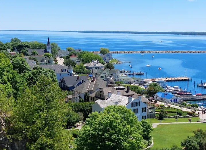 Over 70 miles of trails and roads lead visitors past interpretive signs, geological features, and panoramic water views, while the island’s year‑round open access, historic downtown, and car‑free atmosphere give it a timeless, resort‑like feel that blends natural beauty with rich Great Lakes history.