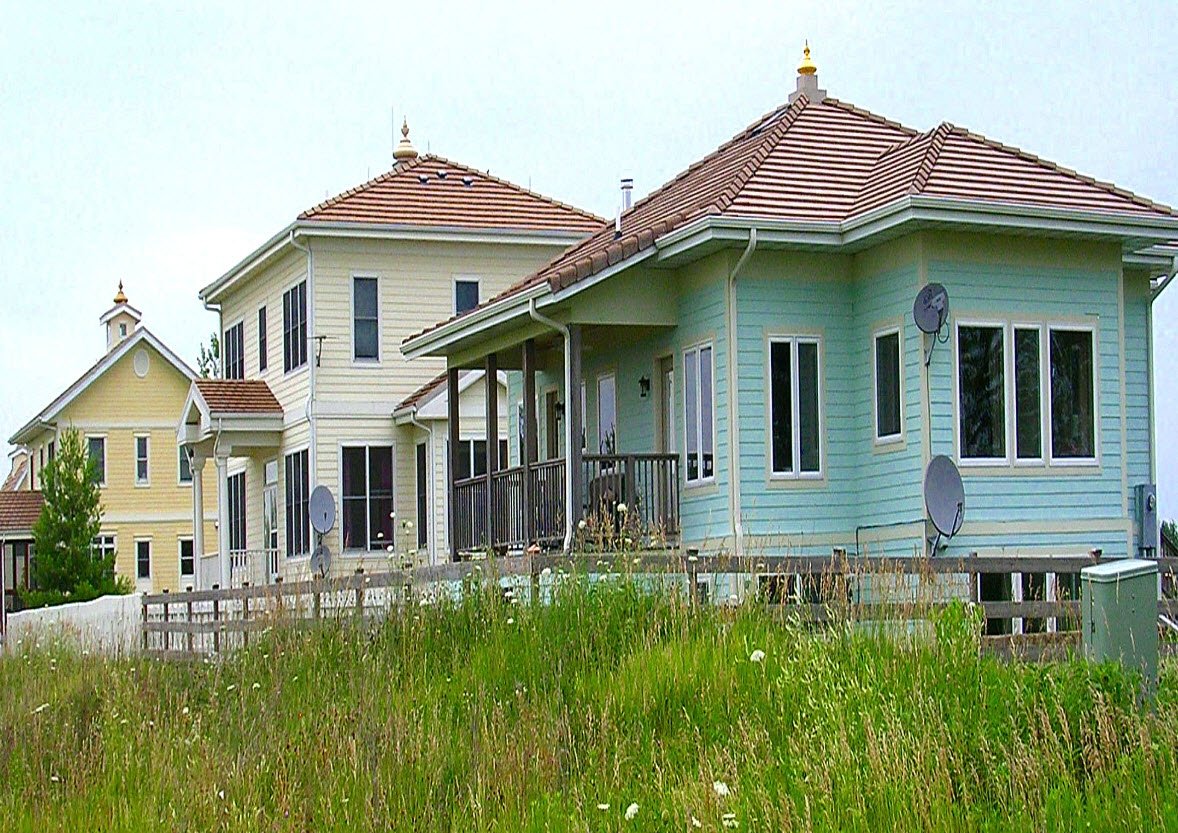 The city covers about one square mile and is laid out in ten circles centered around a large inner circle, with buildings positioned to face east toward the rising sun, promoting harmony, health, and prosperity. Organic agriculture is practiced exclusively, with a ban on pesticides and chemical fertilizers, making it America’s first all-organic city.