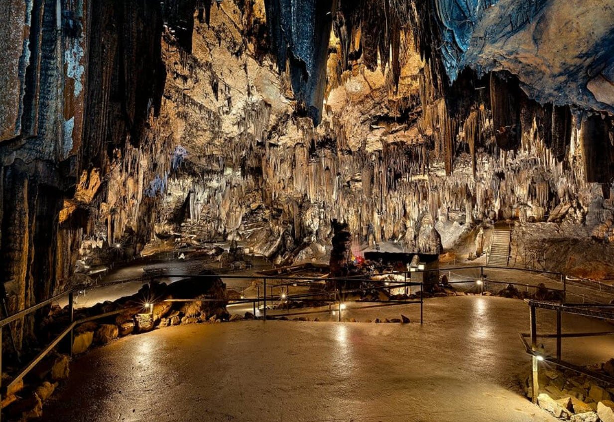 The caves have been used by Native Americans, including the Copena culture, who left behind a 2,000-year-old burial site. The caverns feature one of the largest onyx-marble formations in the world and have a rich history that includes mining attempts in the early 1900s, use as a Prohibition-era speakeasy, and later development into a public show cave.