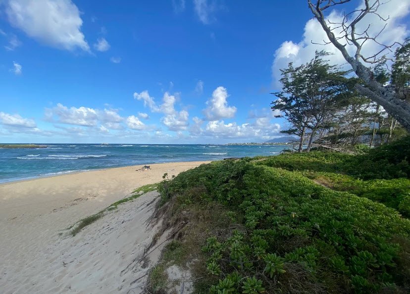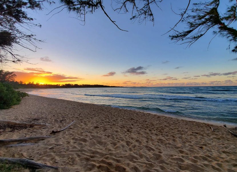 Mālaekahana State Recreation Area spans 37 acres along Oʻahu's scenic northeast coast near Lāʻie, featuring a wide white-sand beach backed by lush ironwood trees and pandanus, ideal for swimming, bodysurfing, shore fishing, picnicking, and hiking coastal trails.