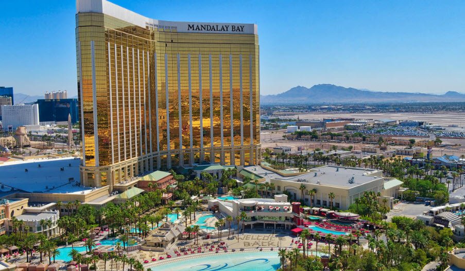 Mandalay Bay is a luxurious tropical-themed resort and casino at the south end of the Las Vegas Strip in Paradise, Nevada, owned by VICI Properties and operated by MGM Resorts International.