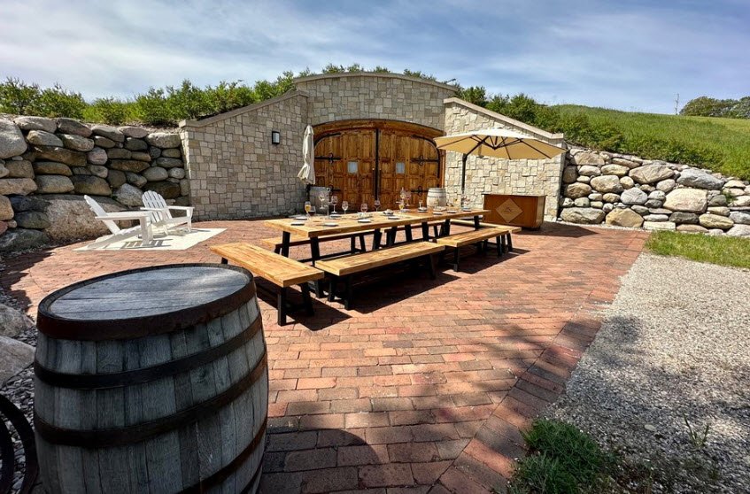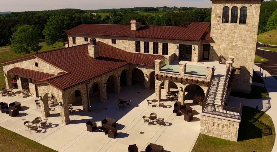 The winery features a striking Tuscan-style building with architectural details made from reclaimed and local materials, including a long live-edge wood countertop. Visitors can enjoy tastings, cellar tours, and picturesque views of Grand Traverse Bay, experiencing a blend of traditional Italian influences and Michigan terroir in the wines and the winemaking approach.