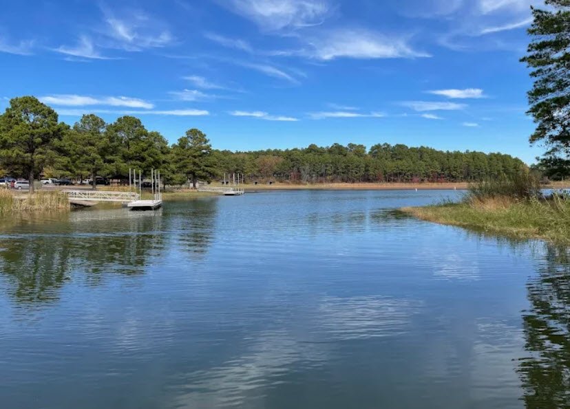 Set in dense pine-hardwood forests of the Piney Woods with gently rolling terrain, sandy loams, and wildlife like bald eagles, alligators, osprey, and fish including largemouth bass, crappie, and catfish thriving in the warmed waters, it offers shoreline fishing, a four-lane boat ramp, swimming, paddling, and birdwatching.
