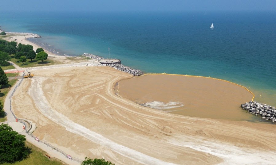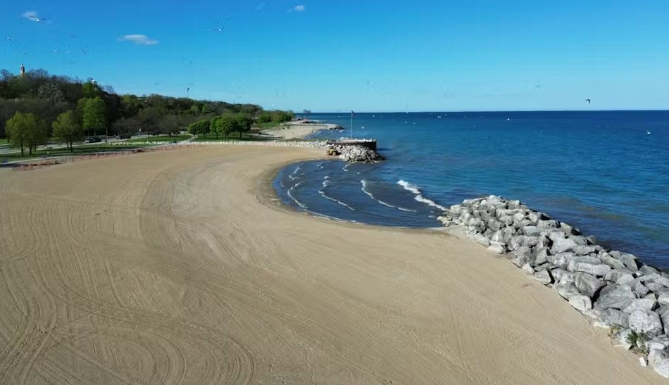 McKinley Beach in Milwaukee, Wisconsin, sits on the shores of Lake Michigan and has long been popular for swimming, relaxing, and enjoying scenic lake views.