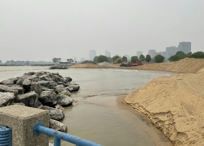 The beach, originally constructed in 1989, acts as a buffer between the lake and the city but became known for dangerous swimming conditions due to unexpectedly deep water and riptide hazards, which led to several near drownings and fatalities.
