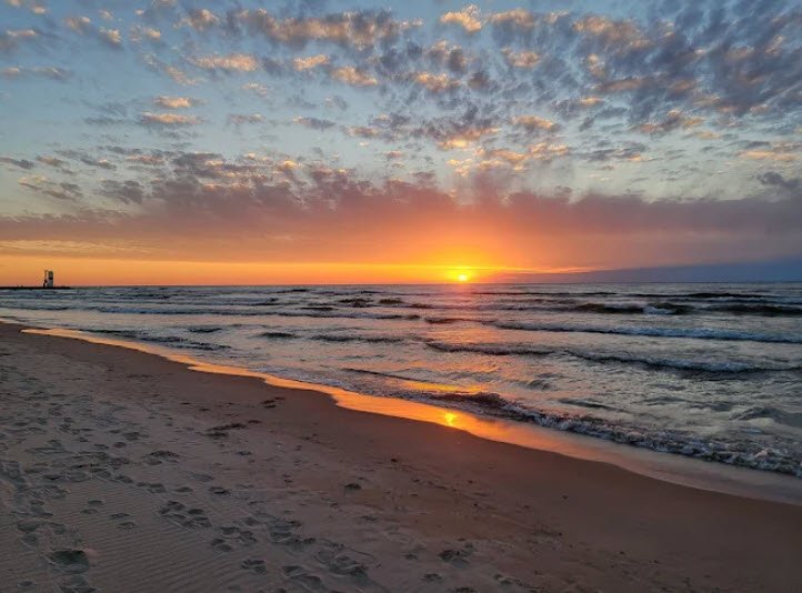 Just steps from Pentwater's shops and eateries, it draws crowds for swimming, beachcombing, and dune hikes, though parking fills quickly on summer afternoons.