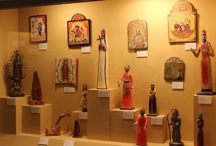 Housed in a hacienda-style adobe home donated by friends since 1968, it showcases over 7,000 objects from Native American, Hispanic, and Anglo-American cultures of northern New Mexico, including her vast collection of more than 1,200 pieces of jewelry, textiles like Navajo chief blankets, pottery by Maria Martinez and Taos Pueblo artists, kachina figures, baskets, paintings, photography, and Hispanic religious arts.
