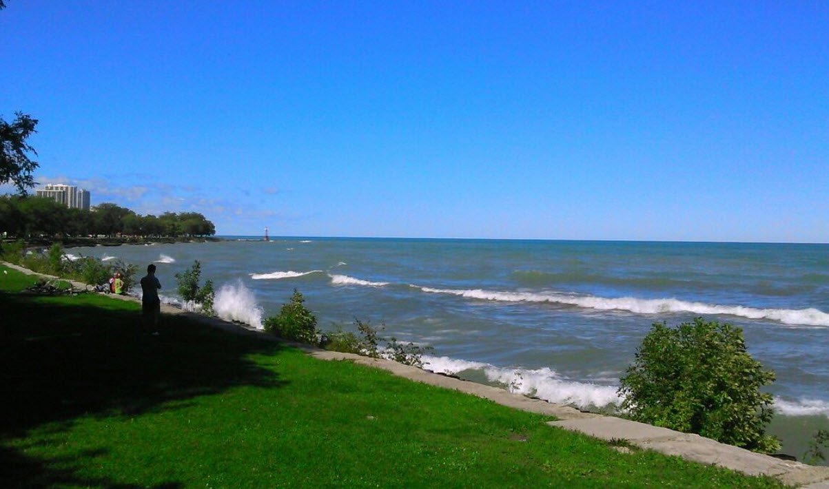 It features distance swimming areas and a non-motorized boat launch. Montrose Beach is bordered by Montrose Harbor and the Montrose Point Bird Sanctuary, providing scenic views and additional recreational opportunities. Parking is available via pay and display lots or street parking, and it is accessible by several CTA bus routes and the nearby Brown Line train station.