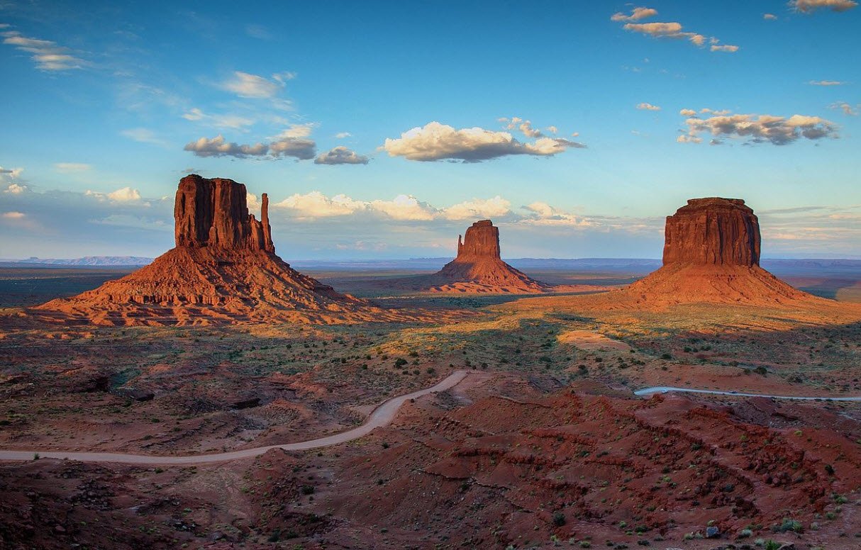 Monument Valley Navajo Tribal Park, located on the Arizona-Utah border, is famous for its striking red sandstone mesas, buttes, and pinnacles that rise dramatically from the desert floor, creating one of the most iconic landscapes of the American Southwest.