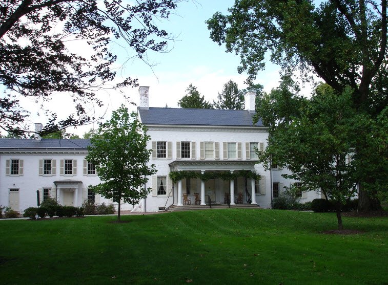 The elegant Georgian-style brick home served multiple generations of the Stockton family, including naval hero Commodore Robert Field Stockton, later hosted Johnson & Johnson executive Robert Wood Johnson Jr. in the 1930s with additions like a pool and tennis court, and functioned as New Jersey's first governor's mansion from 1945 to 1982 for leaders like Robert Meyner.