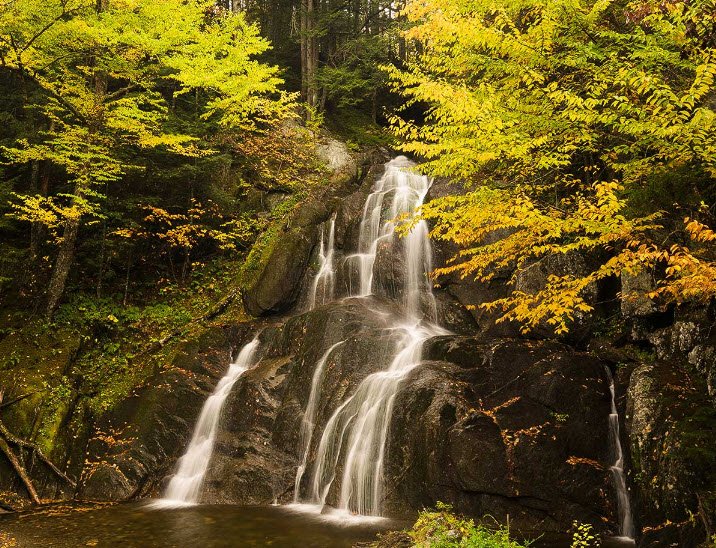 Moss Glen Falls in Vermont is an impressive waterfall located near Stowe, known as the tallest waterfall in the state with a height of about 85 feet.