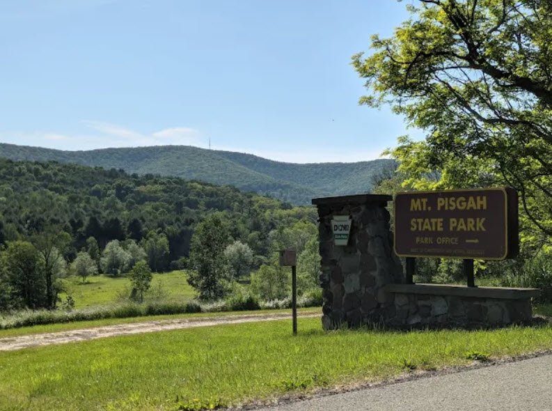Mount Pisgah State Park spans 1,302 acres in Bradford County, Pennsylvania's Endless Mountains region, midway between Troy and Towanda along Mill Creek at the base of 2,260-foot Mount Pisgah.