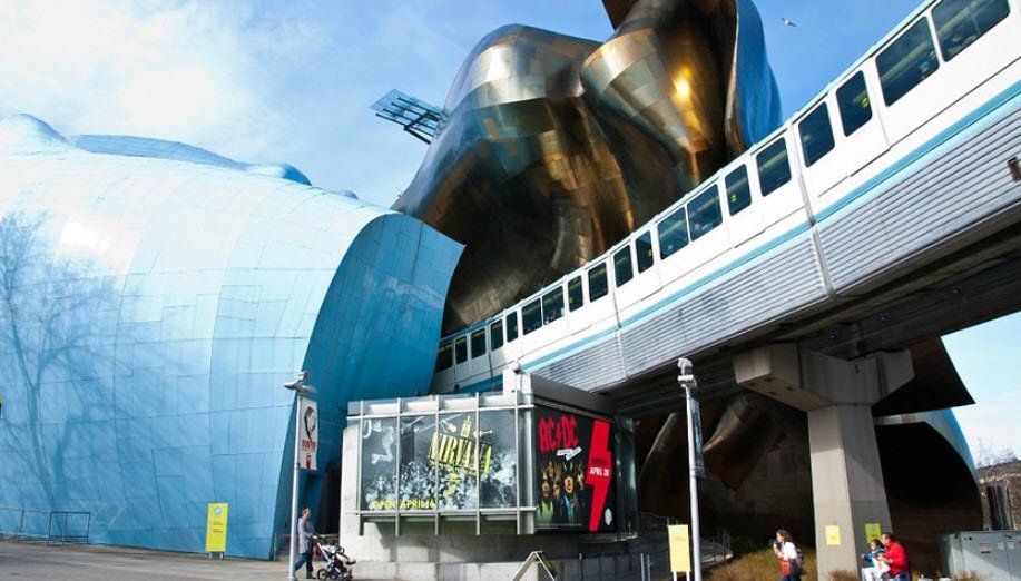 Located on the Seattle Center campus near the Space Needle, it features a distinctive avant-garde building designed by architect Frank Gehry that resembles a smashed electric guitar with colorful, curving metal panels. The museum’s extensive collections include artifacts, hand-written lyrics, instruments, and photographs celebrating local music legends like Jimi Hendrix and Nirvana.