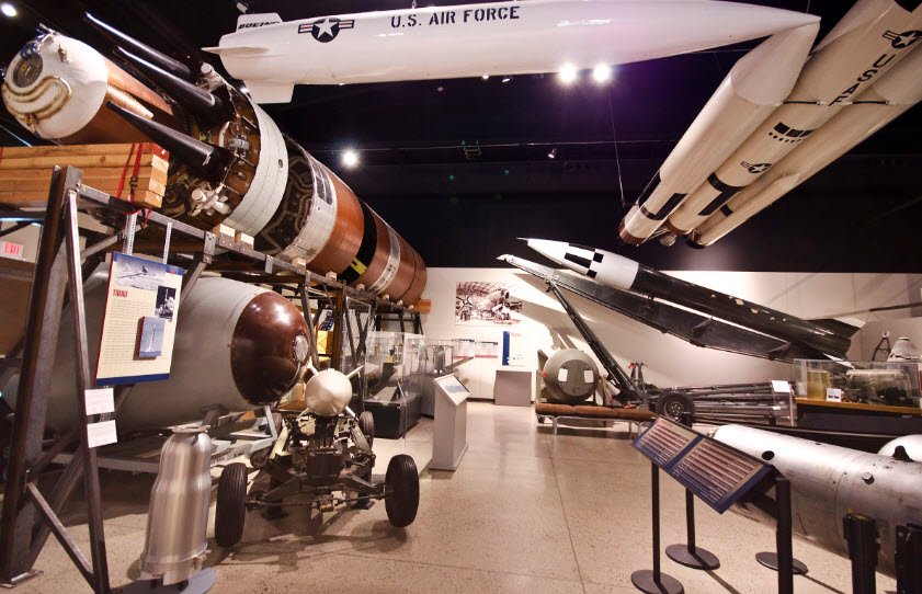 It chronicles the Atomic Age from the Manhattan Project—highlighting Los Alamos scientists, the Trinity test, and bombs like Little Boy and Fat Man—through Cold War developments, nuclear medicine, energy, and modern applications via interactive exhibits, a nuclear medicine simulator, Little Albert's Lab for kids, and outdoor Heritage Park with aircraft, rockets like Atomic Annie cannon, and a B-29 bomber.