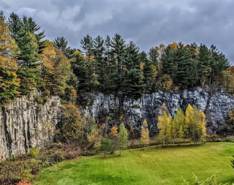 Visitors walk along cliffside paths to view the arch, an old marble quarry, and a man‑made white marble dam, enjoying short woodland trails, picnic spots, and interpretive talks that explain both the geology and the area’s history as a 19th‑ to mid‑20th‑century quarry and later a roadside attraction before becoming a state park in 1985.